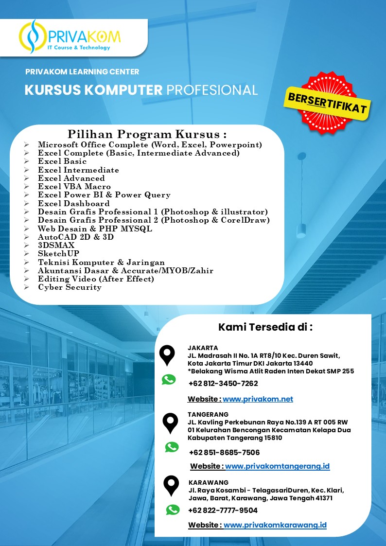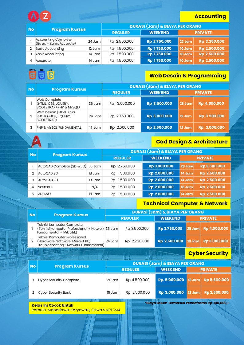 Kursus Komputer, Excel, Web Design, AutoCAD dan Cyber Security